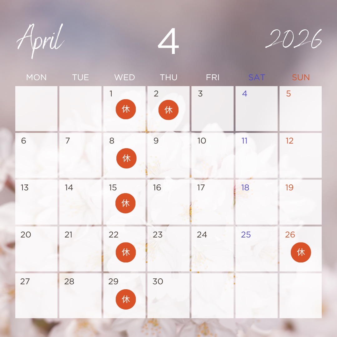 キャンセルは2営業日前までにご連絡をお願いいたします。